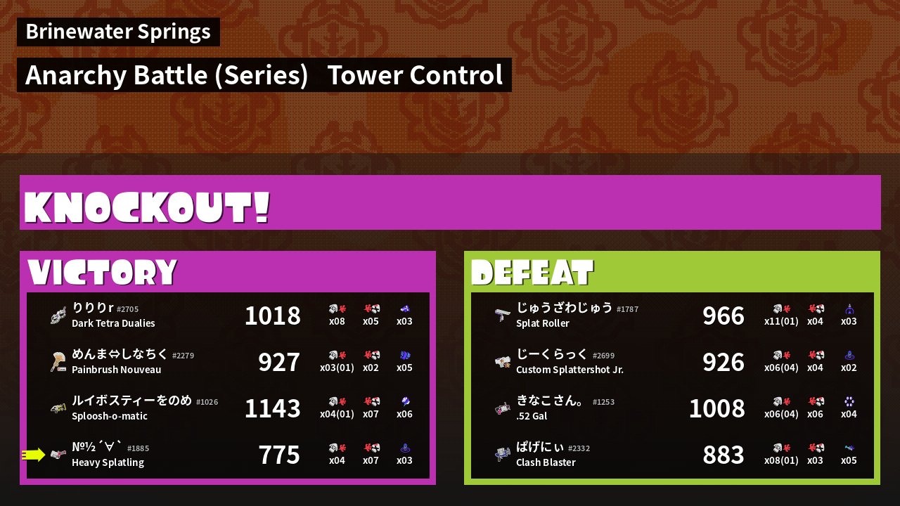 | Weapon | Heavy Splatling ( Sprinkler / Wave Breaker) | ||