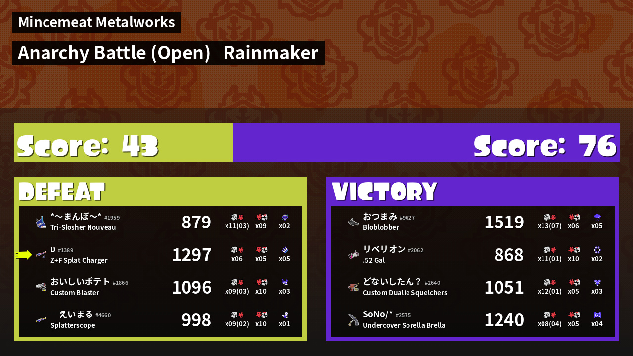 | Mode | Rainmaker - Anarchy Battle (Open) | ||