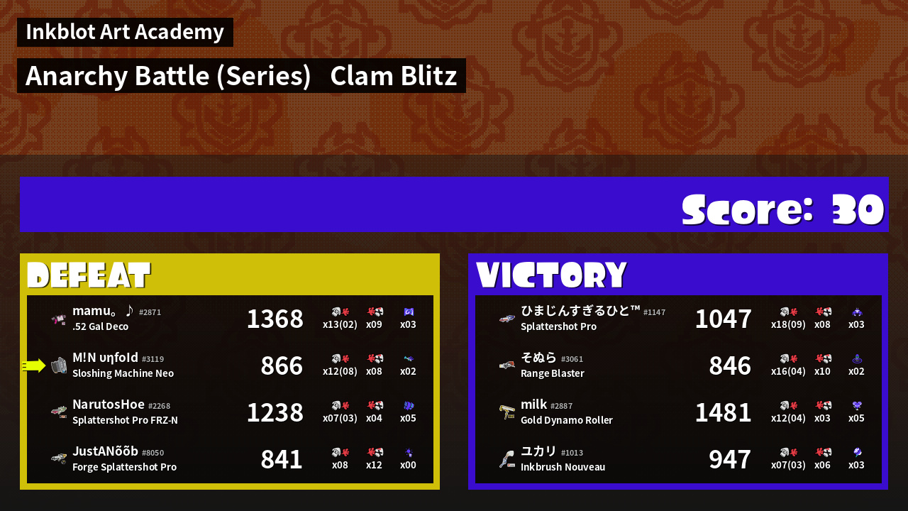 | Mode | Clam Blitz - Anarchy Battle (Series) | ||