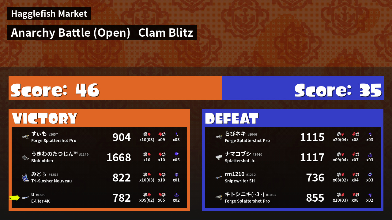 | Mode | Clam Blitz - Anarchy Battle (Open) | ||