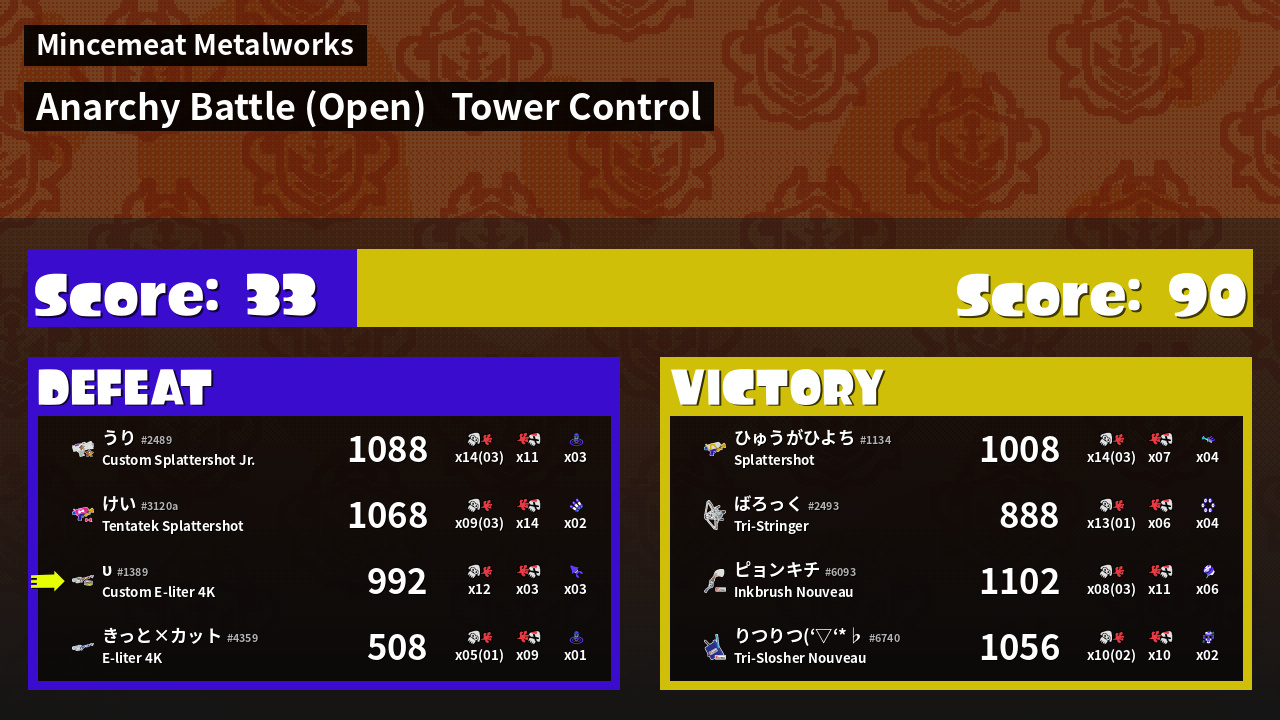 | Mode | Tower Control - Anarchy Battle (Open) | ||