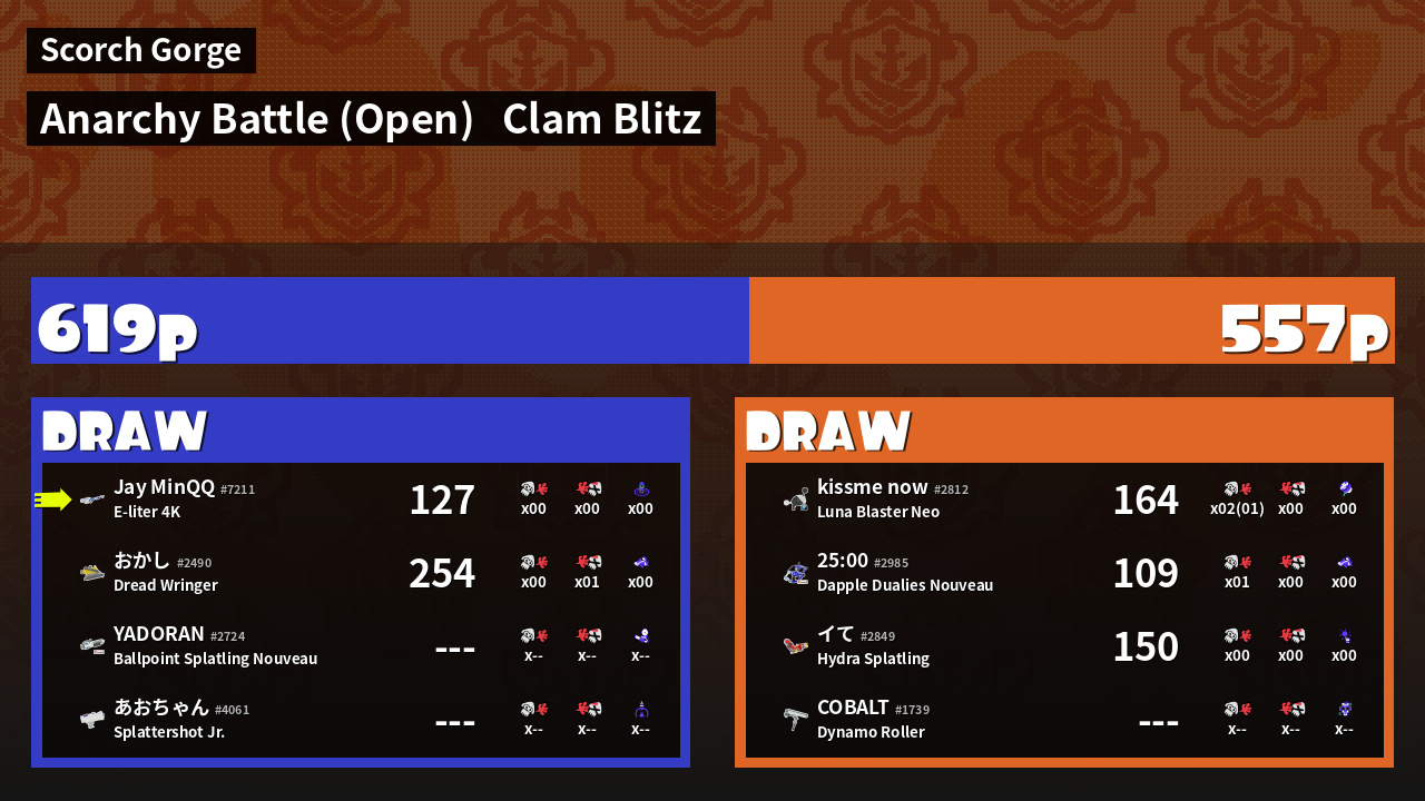 | Mode | Clam Blitz - Anarchy Battle (Open) | ||