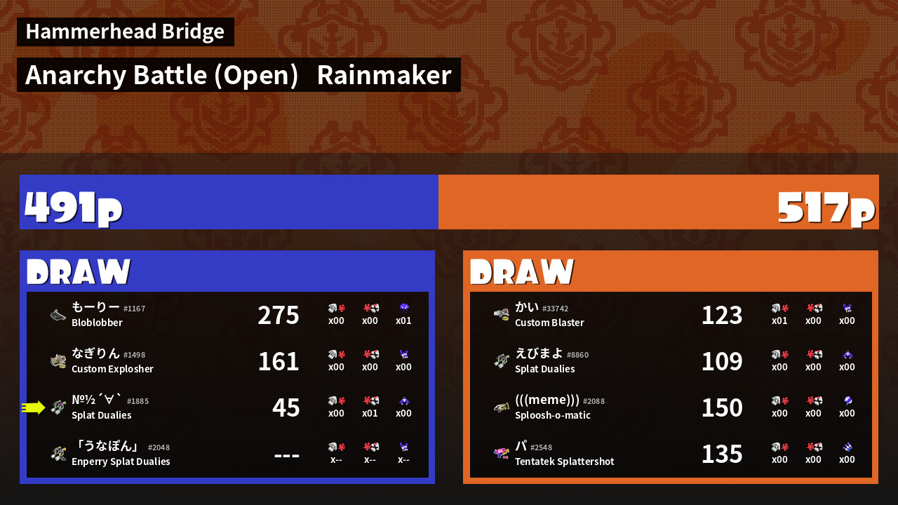 | Mode | Rainmaker - Anarchy Battle (Open) | ||