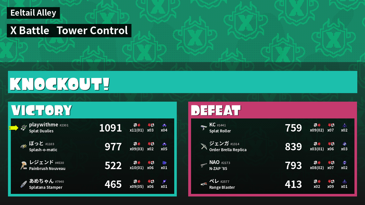 | Mode | Tower Control - X Battle | ||