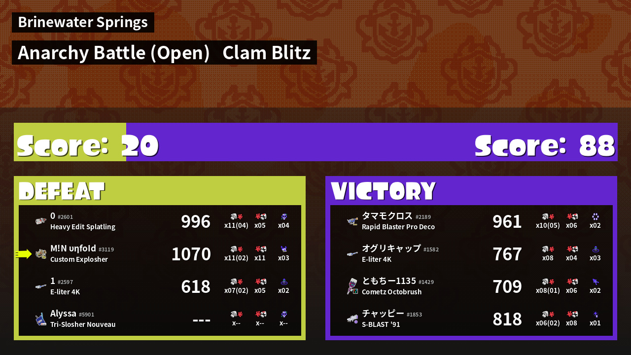 | Mode | Clam Blitz - Anarchy Battle (Open) | ||