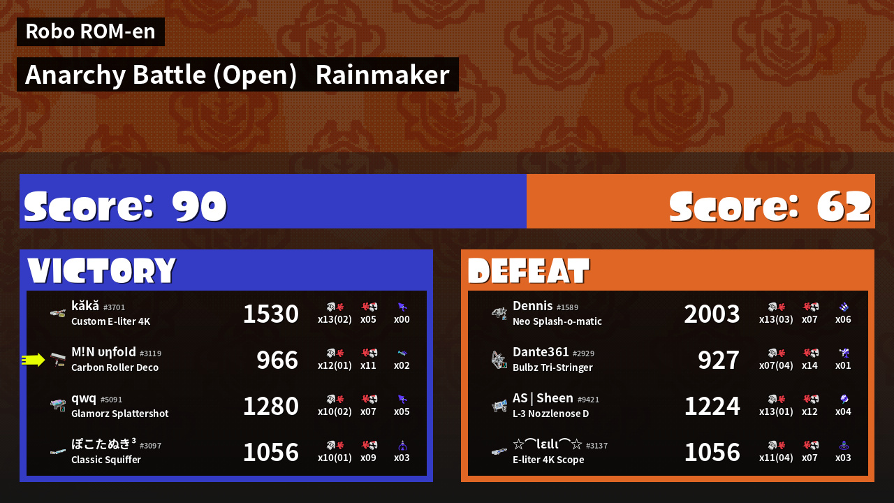 | Mode | Rainmaker - Anarchy Battle (Open) | ||