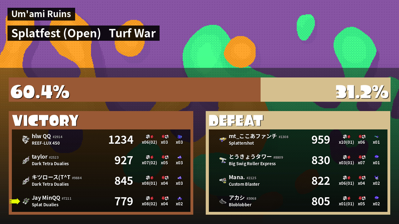| Medals | #1 Overall Splatter #1 Super Jump Spot #1 Splat Assister | ||