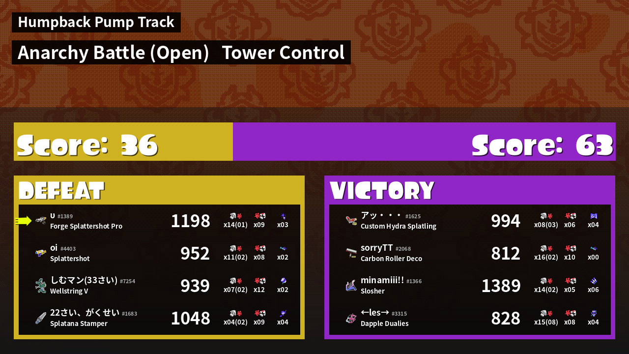 | Mode | Tower Control - Anarchy Battle (Open) | ||