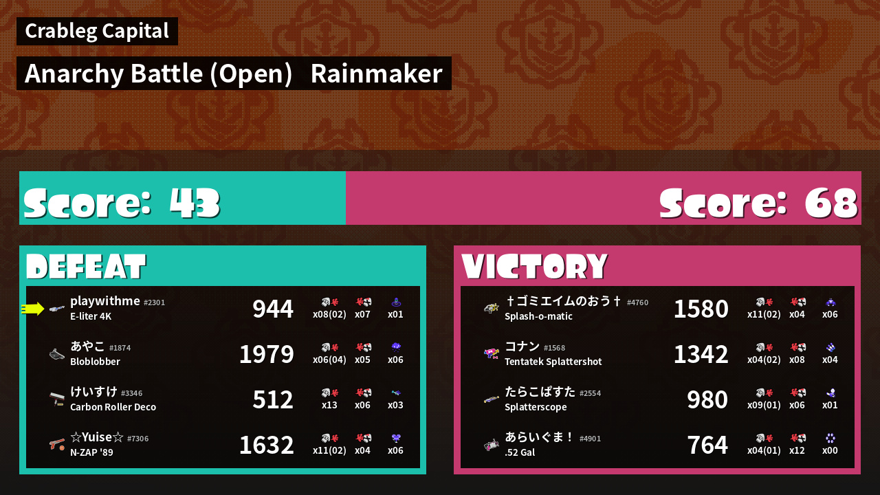 | Mode | Rainmaker - Anarchy Battle (Open) | ||