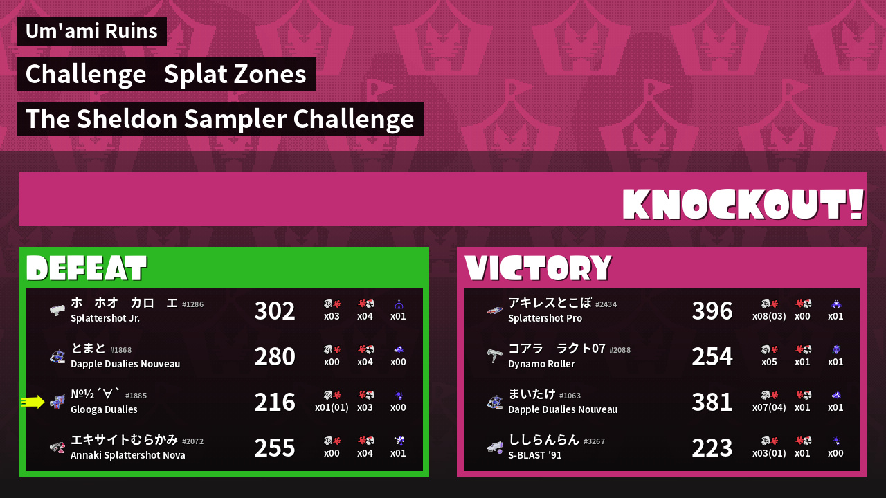 | Medals | #1 Splat Assister #2 Overall Splatter | ||