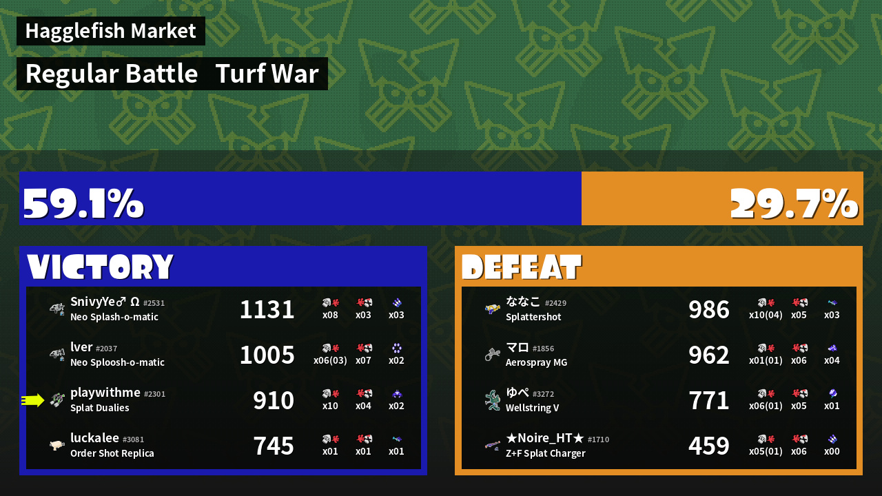 | Mode | Turf War - Regular Battle | ||