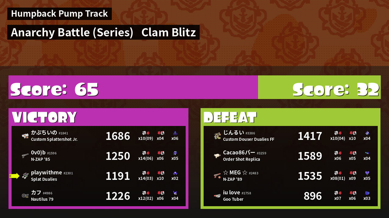 | Mode | Clam Blitz - Anarchy Battle (Series) | ||