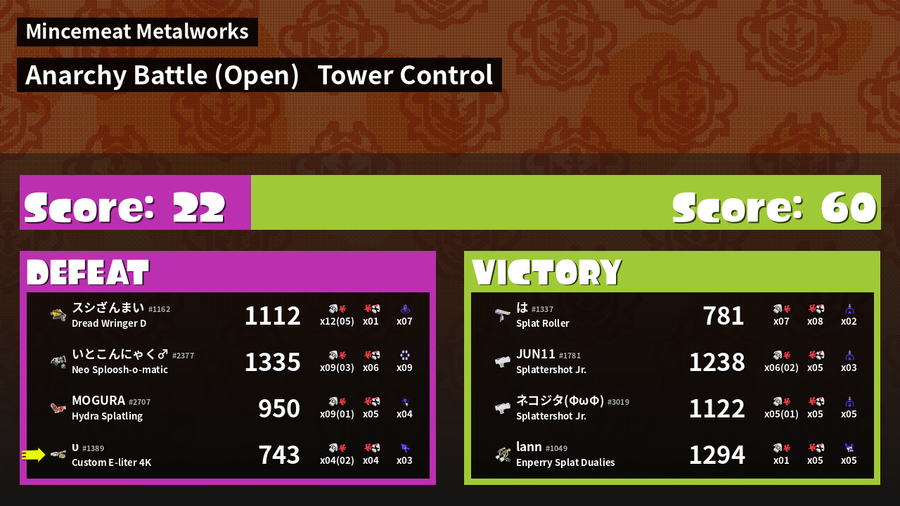| Mode | Tower Control - Anarchy Battle (Open) | ||