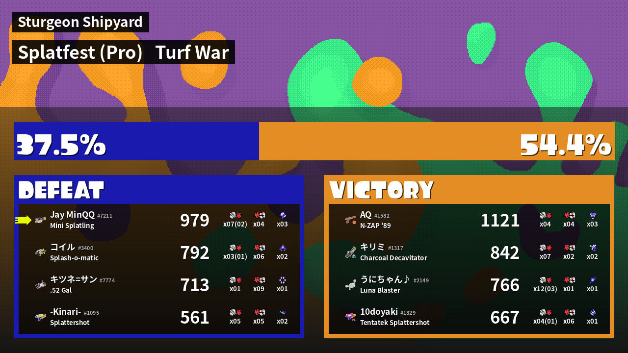 | Mode | Turf War - Splatfest (Pro) | ||