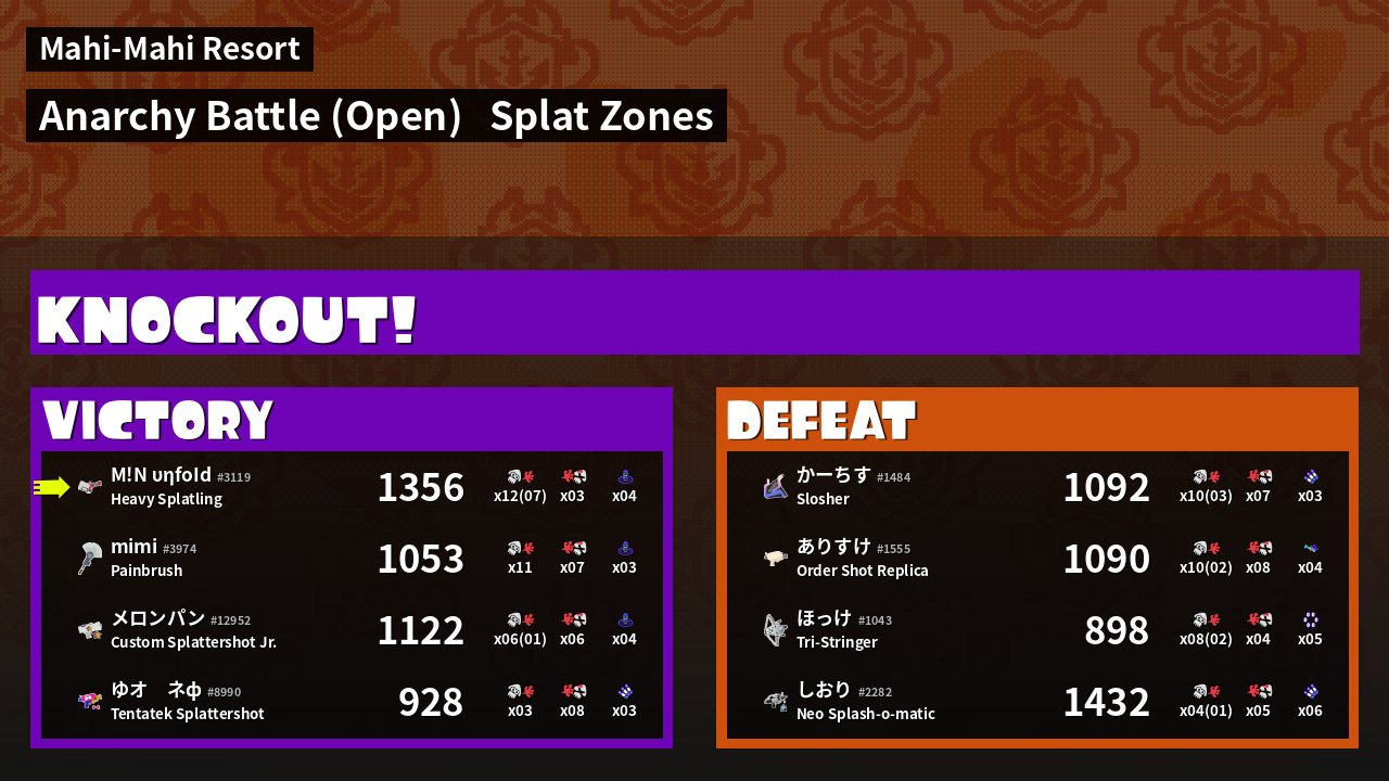 | Mode | Splat Zones - Anarchy Battle (Open) | ||