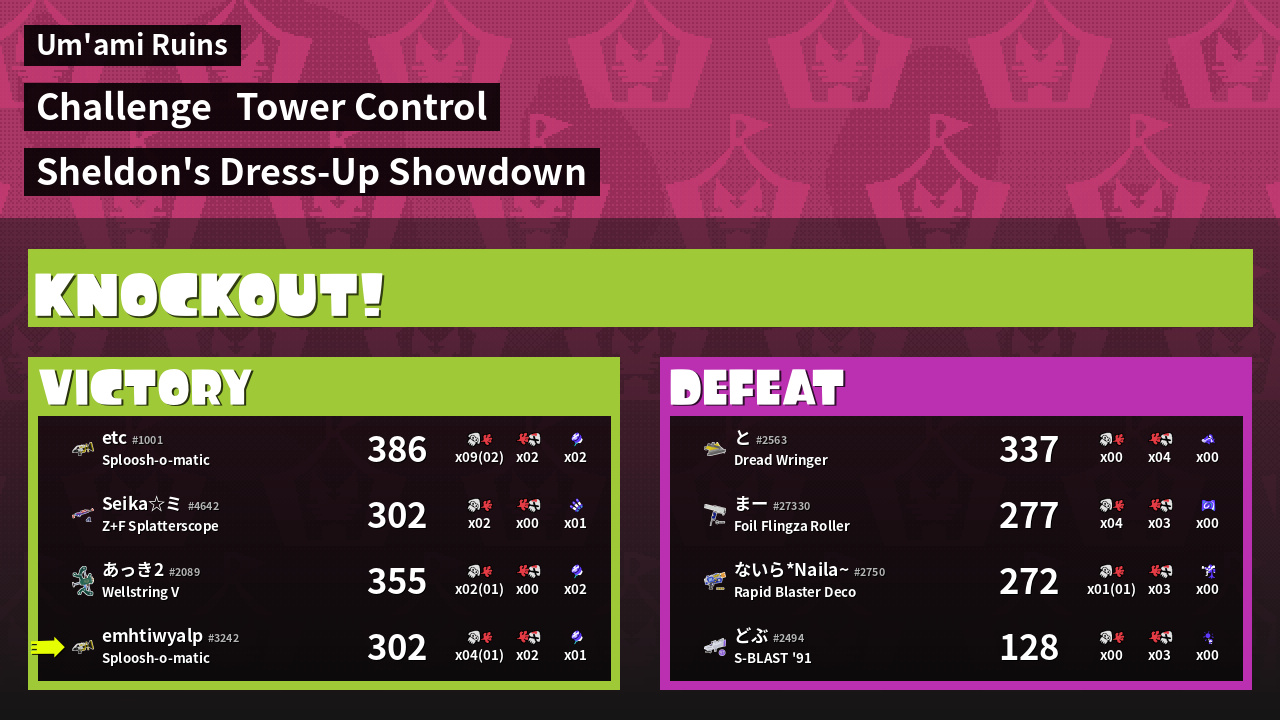 | Weapon | Sploosh-o-matic ( Curling Bomb / Ultra Stamp) | ||