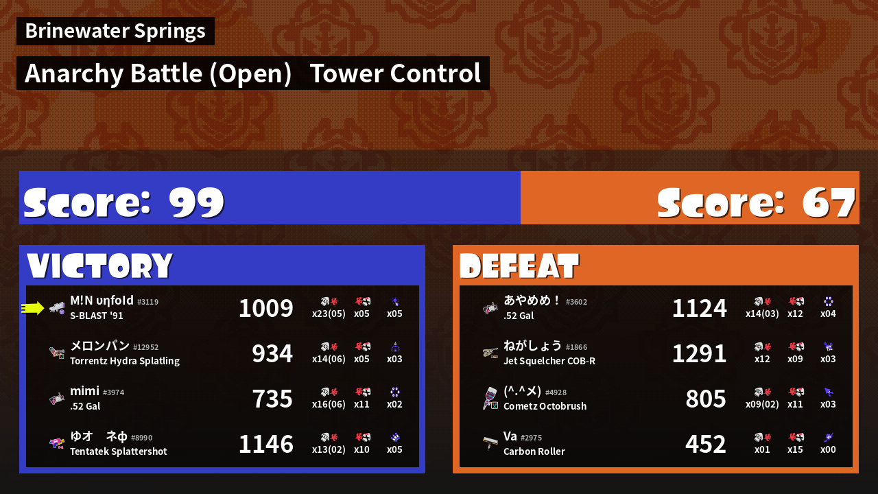 | Mode | Tower Control - Anarchy Battle (Open) | ||