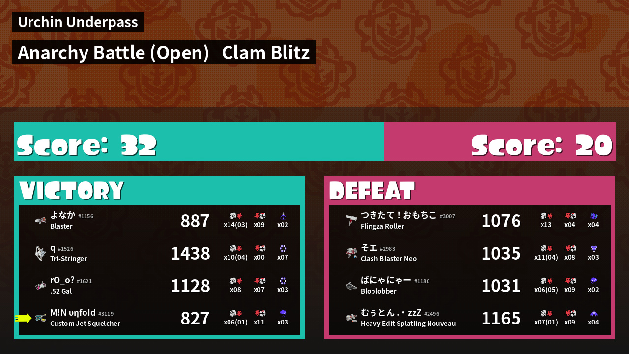 | Mode | Clam Blitz - Anarchy Battle (Open) | ||