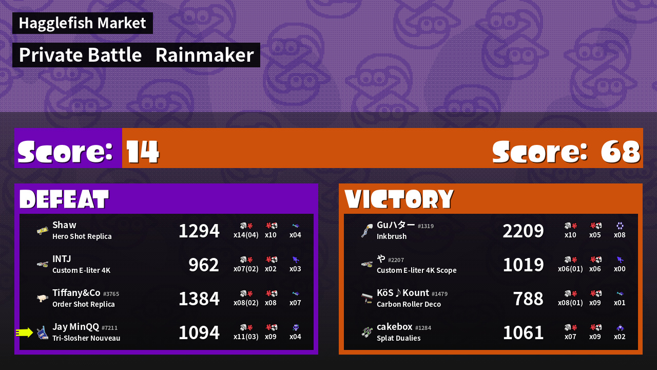 | Medals | #1 Damage Taker First Splat! #1 Tacticooler User | ||