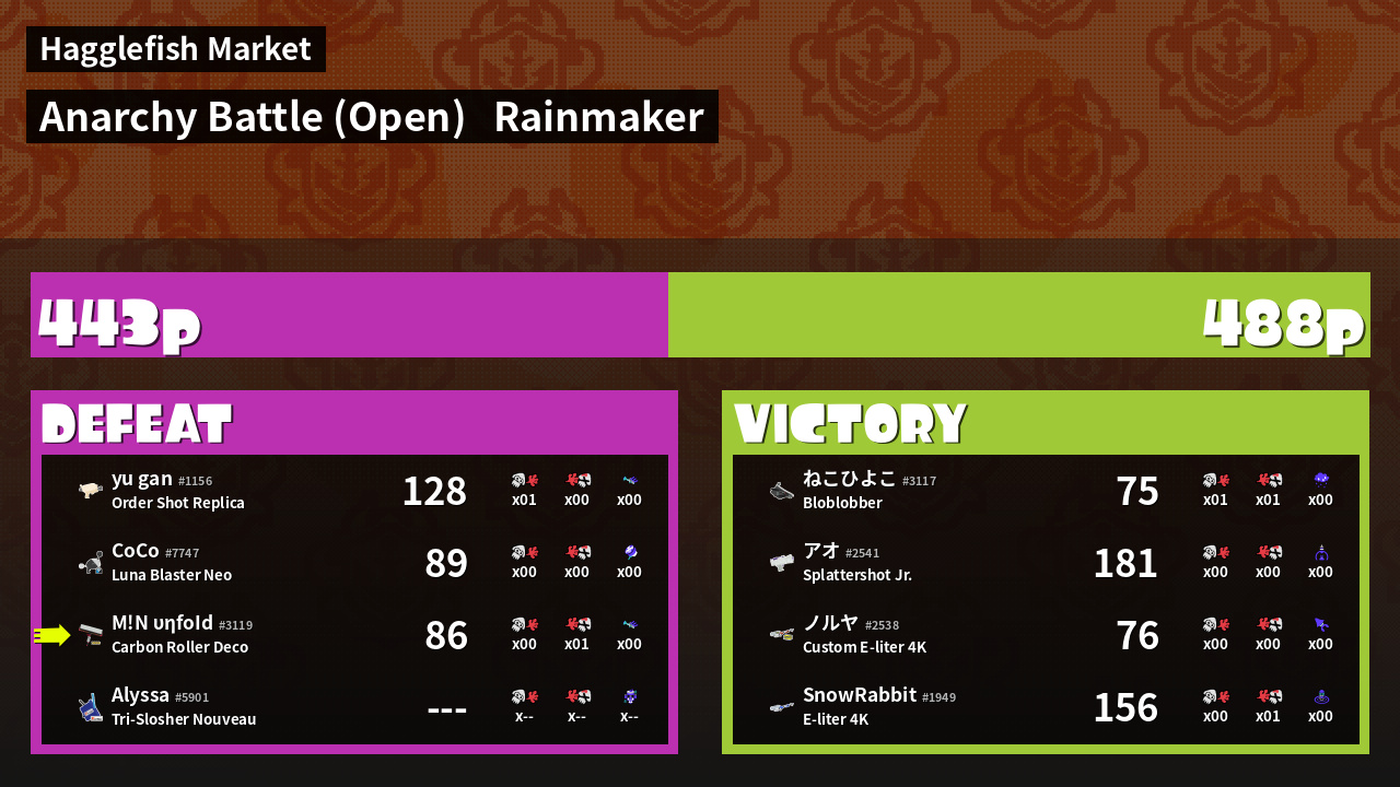 | Mode | Rainmaker - Anarchy Battle (Open) | ||