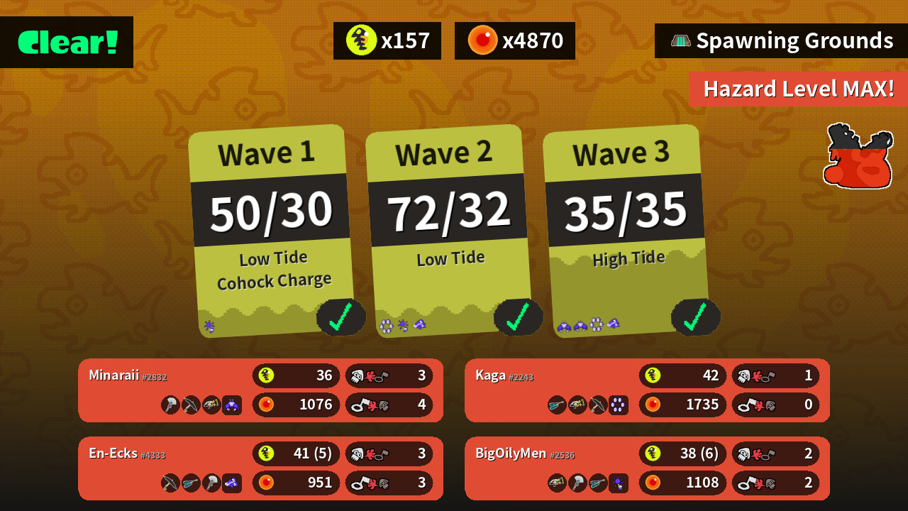 | Weapons | Painbrush Undercover Brella Sploosh-o-matic | Jet Squelcher Sploosh-o-matic Undercover Brella | Undercover Brella Jet Squelcher Painbrush | Sploosh-o-matic Painbrush Jet Squelcher |