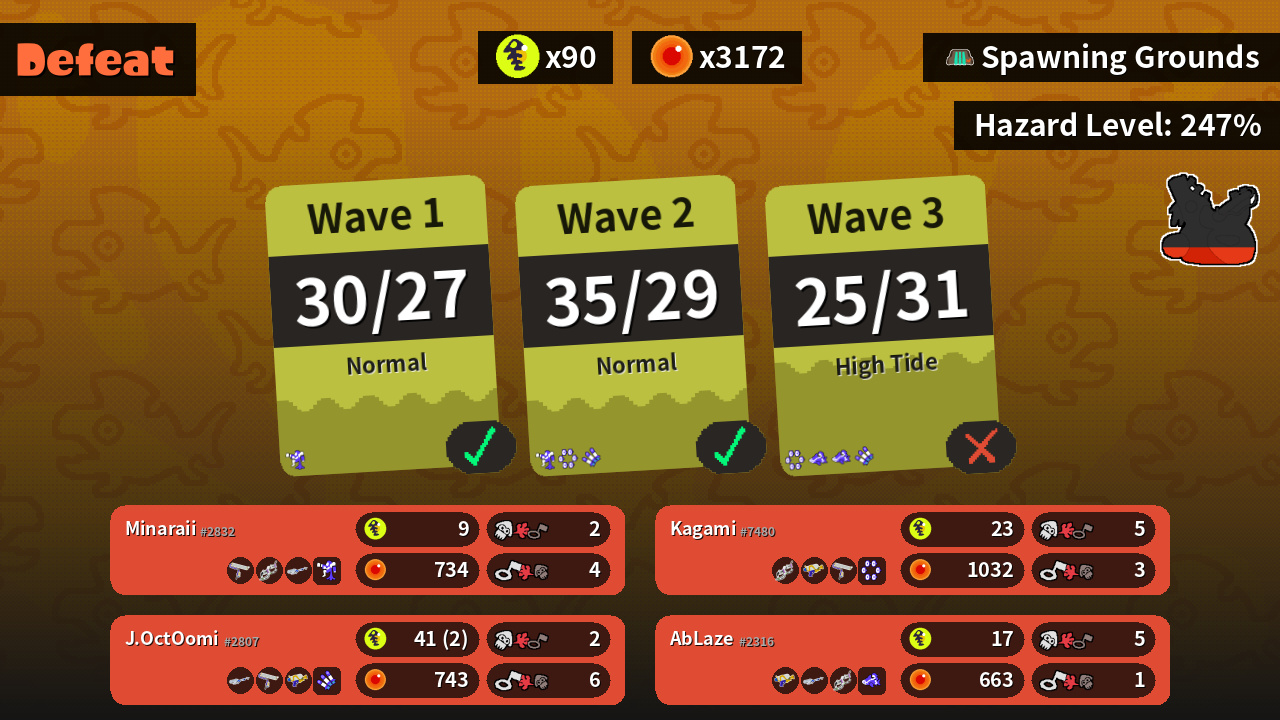 | Weapons | Splat Roller Dark Tetra Dualies E-liter 4K | E-liter 4K Splat Roller Splattershot | Dark Tetra Dualies Splattershot Splat Roller | Splattershot E-liter 4K Dark Tetra Dualies |