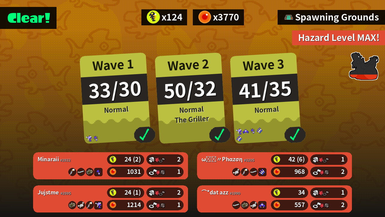 | Boss Salmonid | 16 | 17 | 12 | 15 |