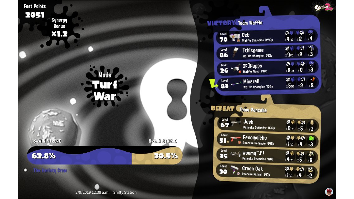 | Splatfest Title | Waffle Champion → Waffle King | ||||||||||||||||||||||||||||||||||||||||
