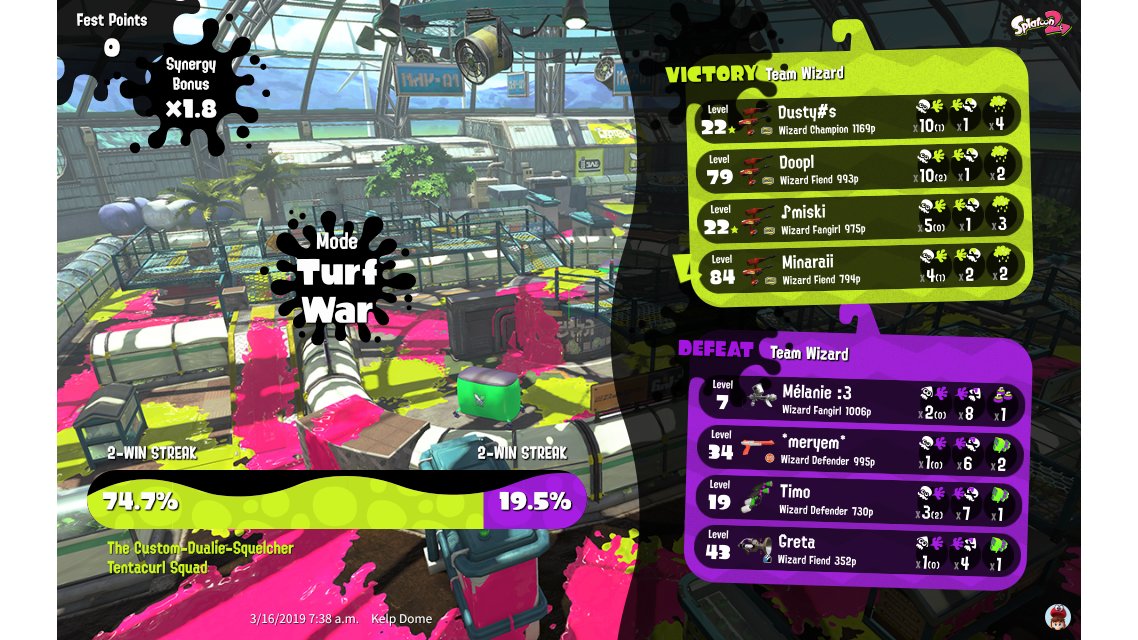 | Splatfest Title | Wizard Fiend 53 → Wizard Fiend 179 | |||||||||||||||||||||||||||||||