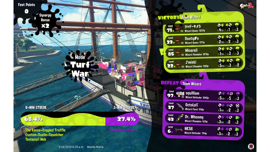 | Splatfest Title | Wizard Champion 329 → Wizard Champion 509 | ||||||||||||||||||||||||||||||||||||||||