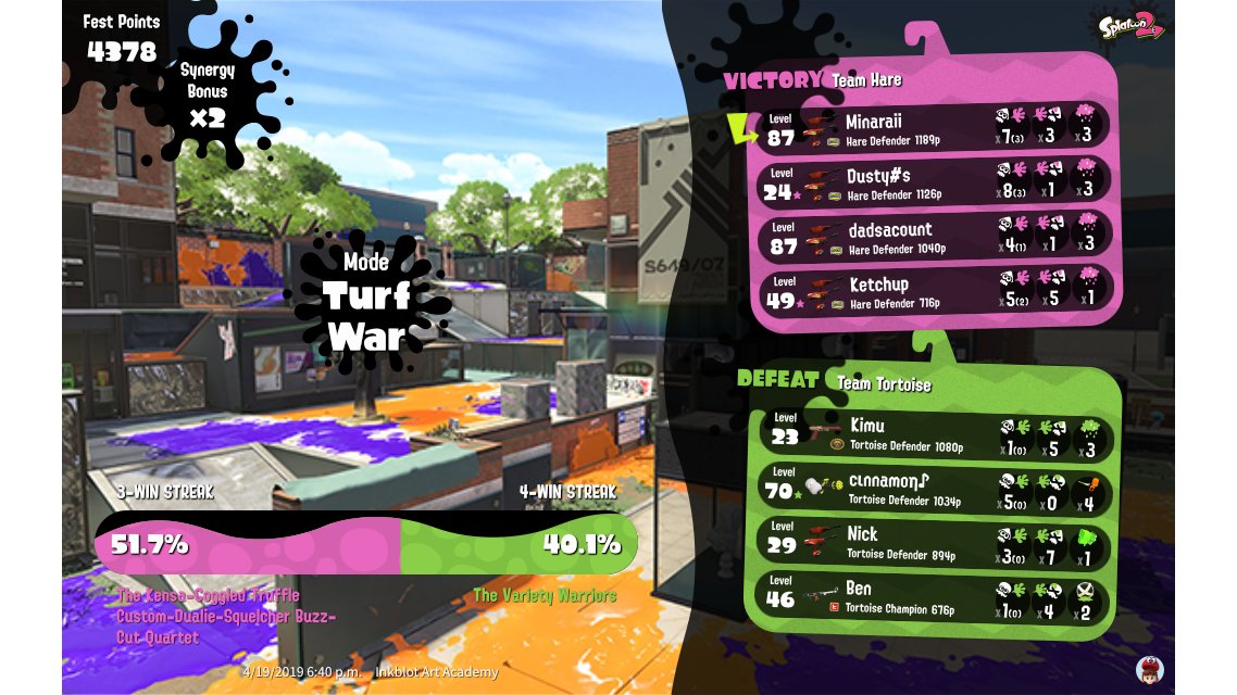 | Mode | Turf War - Splatfest (Normal) | ||||||||||||||||||||||||||||||||||||||||