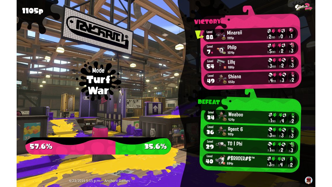 | Mode | Turf War - Regular Battle | |||||||||||||||||||||||||||||||||||||