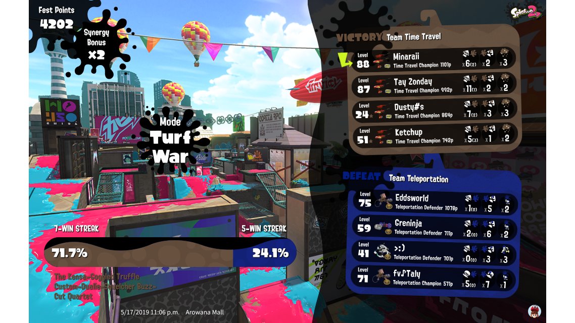 | Splatfest Title | Time Travel Champion 410 → Time Travel Champion 590 | |||||||||||||||||||||||||||||||||||||||||||