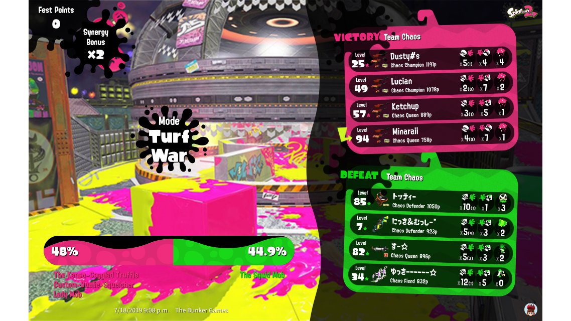 | Mode | Turf War - Splatfest (Normal) | ||||||||||||||||||||||||||||||||||||||||||||||