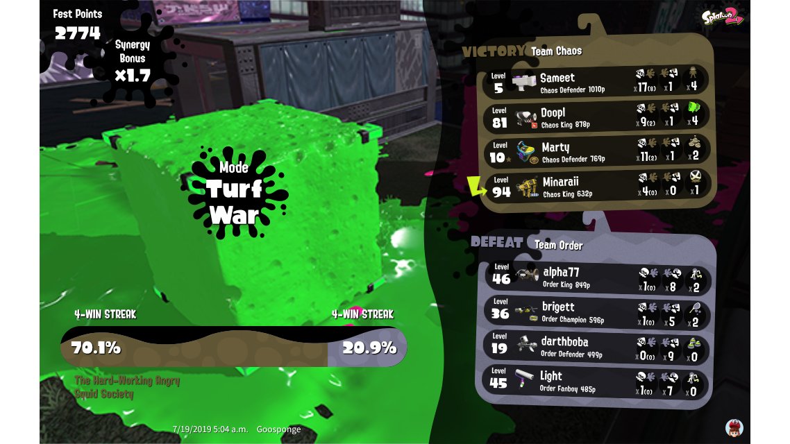 | Splatfest Title | Chaos King → Chaos King | |||||||||||||||||||||||||||||||||||||||||||