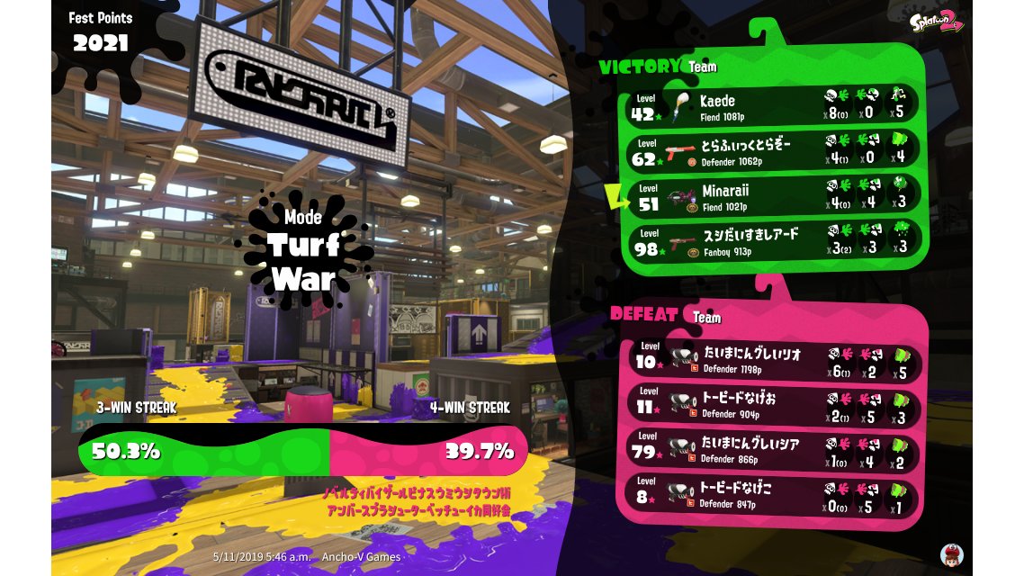 | Splatfest Title | パ Fiend 8 → パ Fiend 98 | ||||||||||||||||||||||||||||||||||