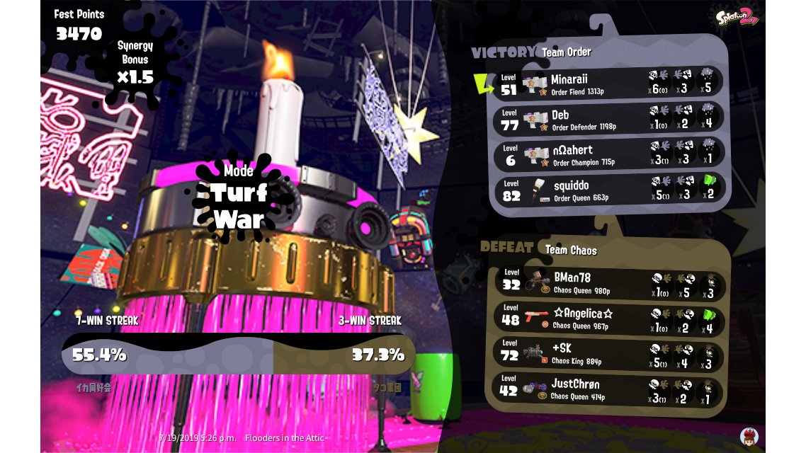 | Splatfest Title | 秩序 Fiend 181 → 秩序 Defender 66 | |||||||||||||||||||||||||||||||||||||