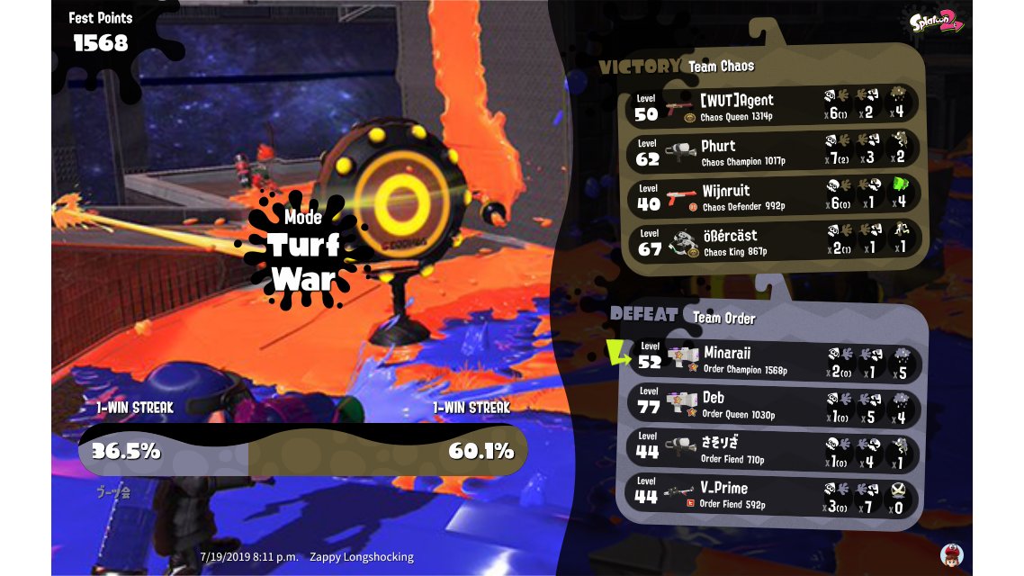 | Mode | Turf War - Splatfest (Normal) | ||||||||||||||||||||||||||||||||||||||||