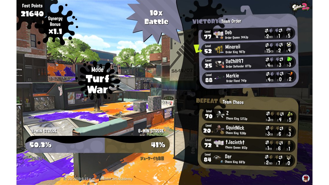 | Splatfest Title | 秩序 King → 秩序 King | ||||||||||||||||||||||||||||||||||||||||