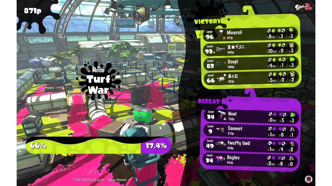 | Mode | Turf War - Regular Battle | |||||||||||||||||||||||||||||||||||||