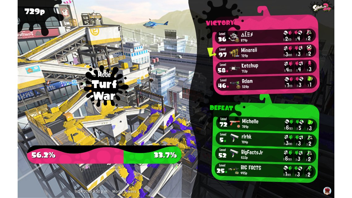 | Mode | Turf War - Regular Battle | |||||||||||||||||||||||||||||||||||||