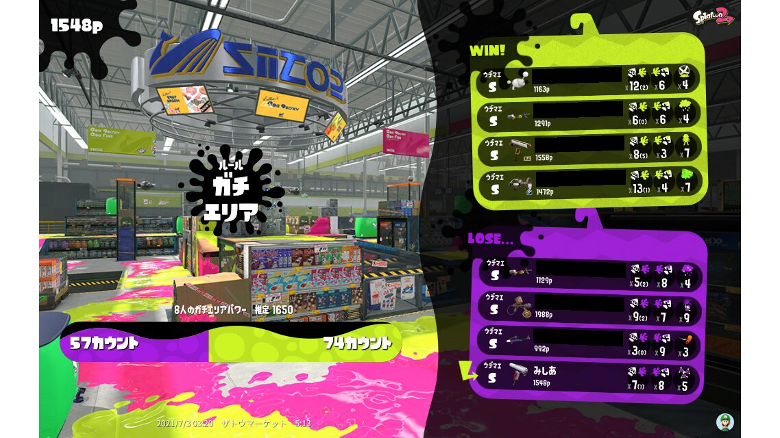 | Mode | Splat Zones - Ranked Battle | ||||||||||||||||||||||||||||||||||||||||