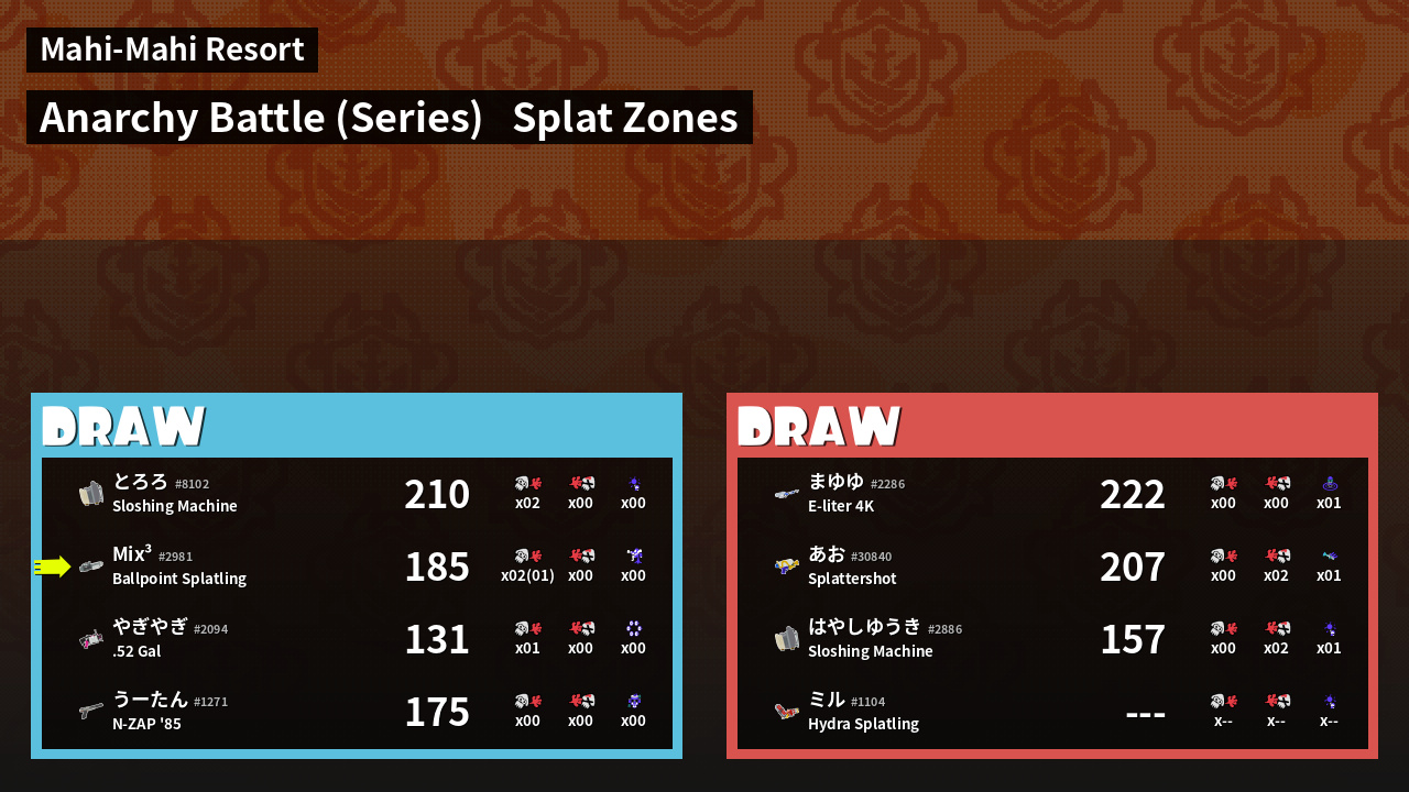 | Mode | Splat Zones - Anarchy Battle (Series) | ||