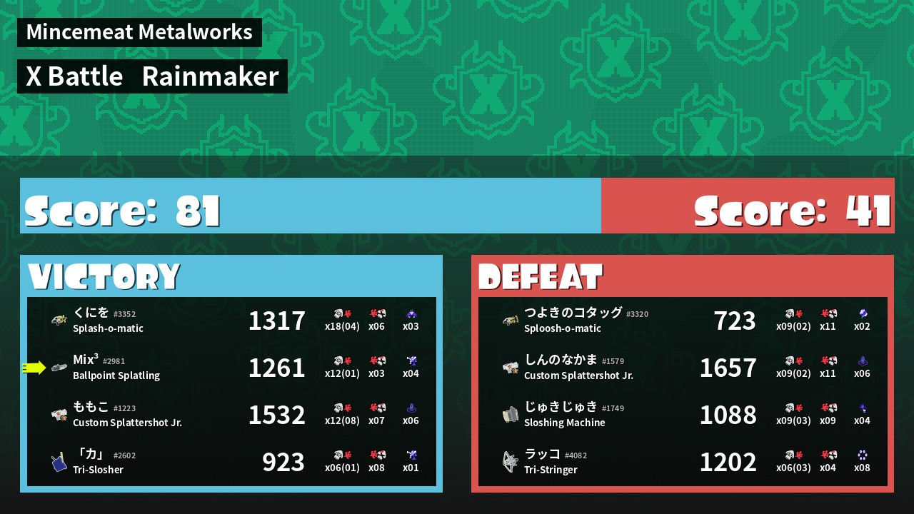 | Weapon | Ballpoint Splatling ( Fizzy Bomb / Inkjet) | ||