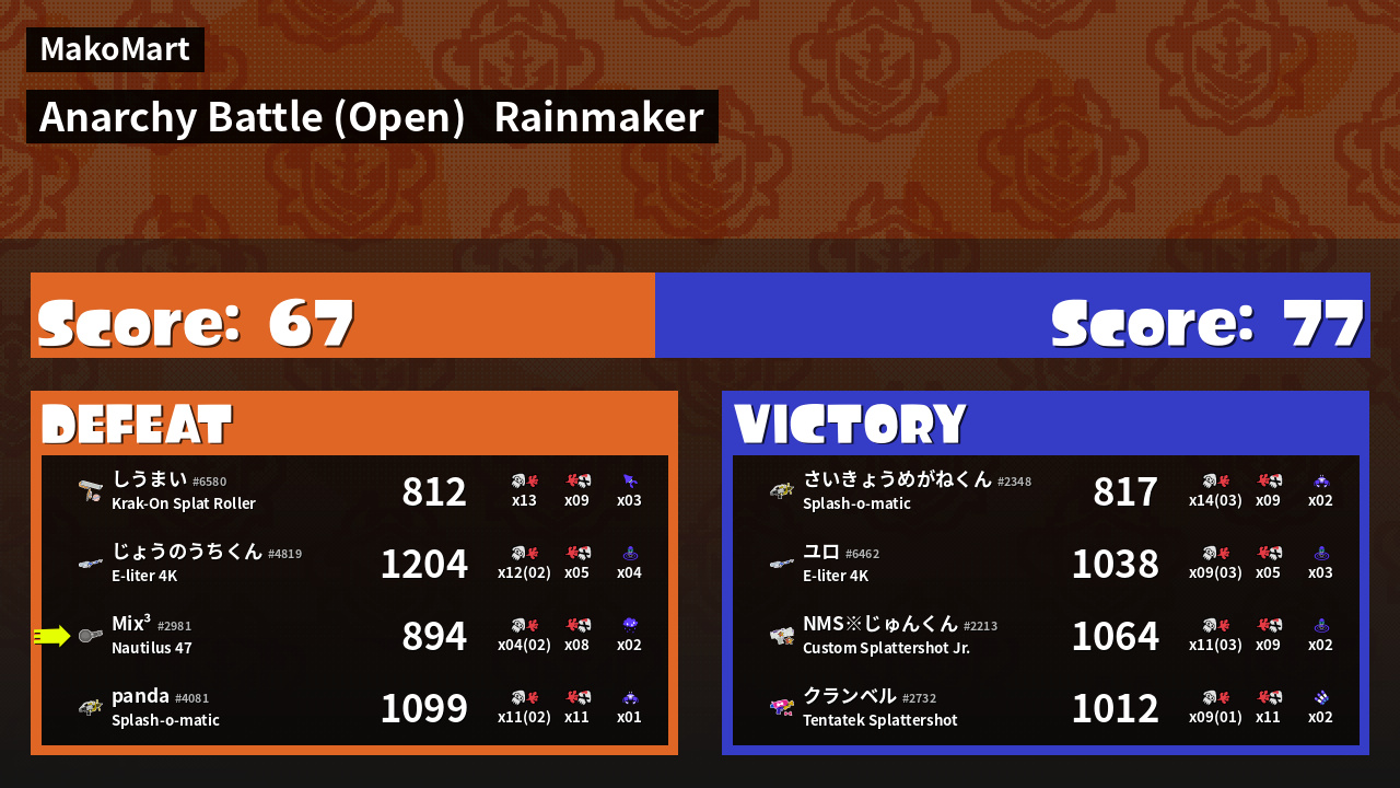 | Mode | Rainmaker - Anarchy Battle (Open) | ||