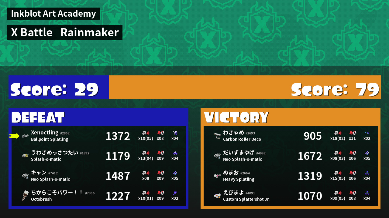 | Mode | Rainmaker - X Battle | ||
