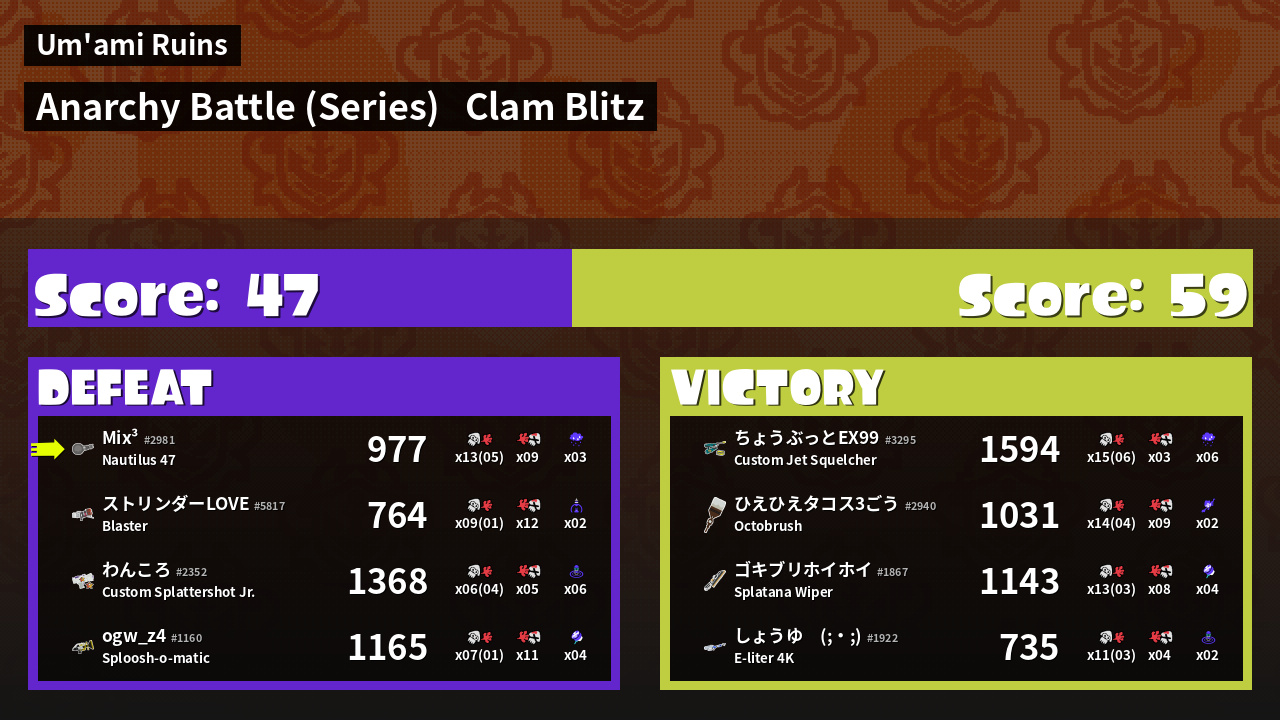 | Mode | Clam Blitz - Anarchy Battle (Series) | ||