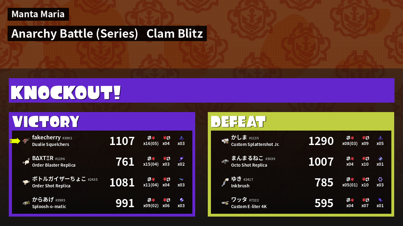 Kills / Deaths | 11 + 5 / 4 > Kill Ratio: 2.75 | ||