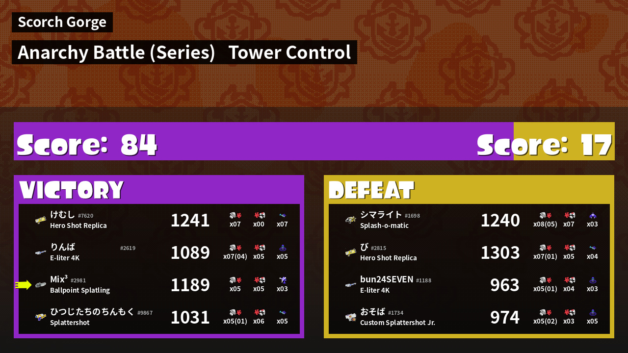 Name | Weapon | Inked | ![]() |