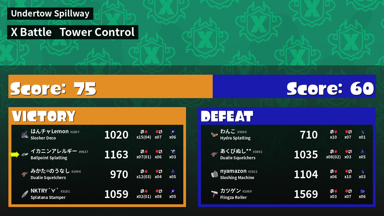 | Fluttering Human イカニンアレルギー #9637 |  Ballpoint Splatling                    | B | 1,163 | 6 + 1 | 6 | 1.00 |  3 | |